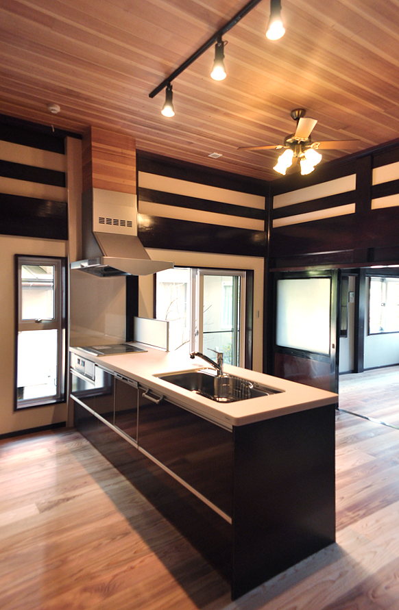 特に、「広間」と「中の間」の二間続きの枠の内を移設したリビングとダイニングキッチンのデザインがお気に入りとのことで、広々とした落ち着きのある空間に奥様の笑顔が広がりますね。